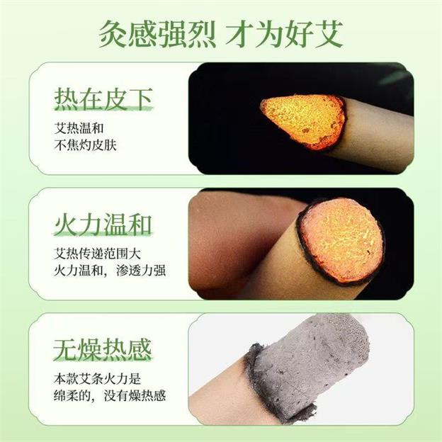 選用大別山陳年艾葉,灸感更好,艾絨細膩,蓬松柔軟易成型;熱在皮下,艾熱溫和,不焦灼皮膚;艾熱傳遞范圍大,火力溫和,沒有燥熱感。