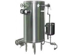 超高溫瞬時滅菌機,在主機內裝著壓力容器—高溫桶,用作充盛壓力蒸汽。桶外的主要設置是螺旋形雙套管,用作對進、出物料的冷熱交換;桶內的主要設置時螺旋形單管,用作間接受熱。 物料的滅菌過程。物料通過供料泵進入雙套盤管的外層流道、由內層流出的熱料間接加熱而得到預熱,當物料進入設置在高溫桶內的高溫盤管時,由于桶內的蒸汽間接加熱而被加熱到需要的滅菌溫度,然后在桶外單旋管內保溫而使物料細菌被殺滅,當回到雙套盤管時,物料便進入內層流道,被外層冷料所冷卻,從而使出料溫度顯著下降(一般低于65℃)。如工藝上需要提高或降低出料溫度時,可啟用角式截止閥,讓它接通熱源(蒸汽)或冷源(水或冰水等)讓它們進入雙套管下端的外層流道。 節流閥是可以調節的,一方面讓物料維持在一定的壓力之下, 使其沸點溫度提高,以防止汽化:另一方面,也作調節流量用。物料最后經三通旋塞除料。該旋塞下端接著旋管,其出口將著貯槽,當需要時,可旋動旋管對準溢流管。進料三通旋塞的上端與貯槽接通,下端則與料源管道相連接。歡迎新老客戶洽談合作 ,共同發展