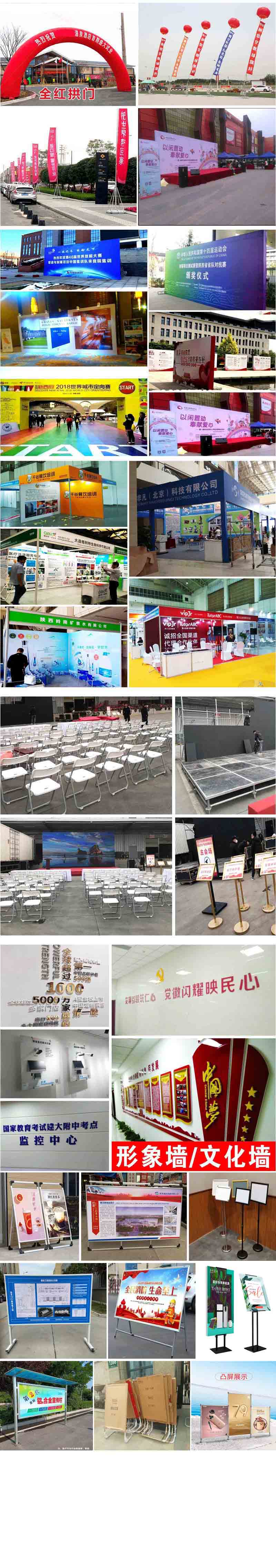 5, 活動現場布置:展具布置,門型展架,易拉寶,弓形展架,德展,展板架等現場布置。